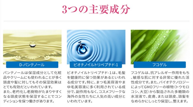 十分な潤いを与える効果があり、ダメージを受けた毛質を改善し艶のある長い毛へと育てることにより健康的な目元へ導いてくれます。